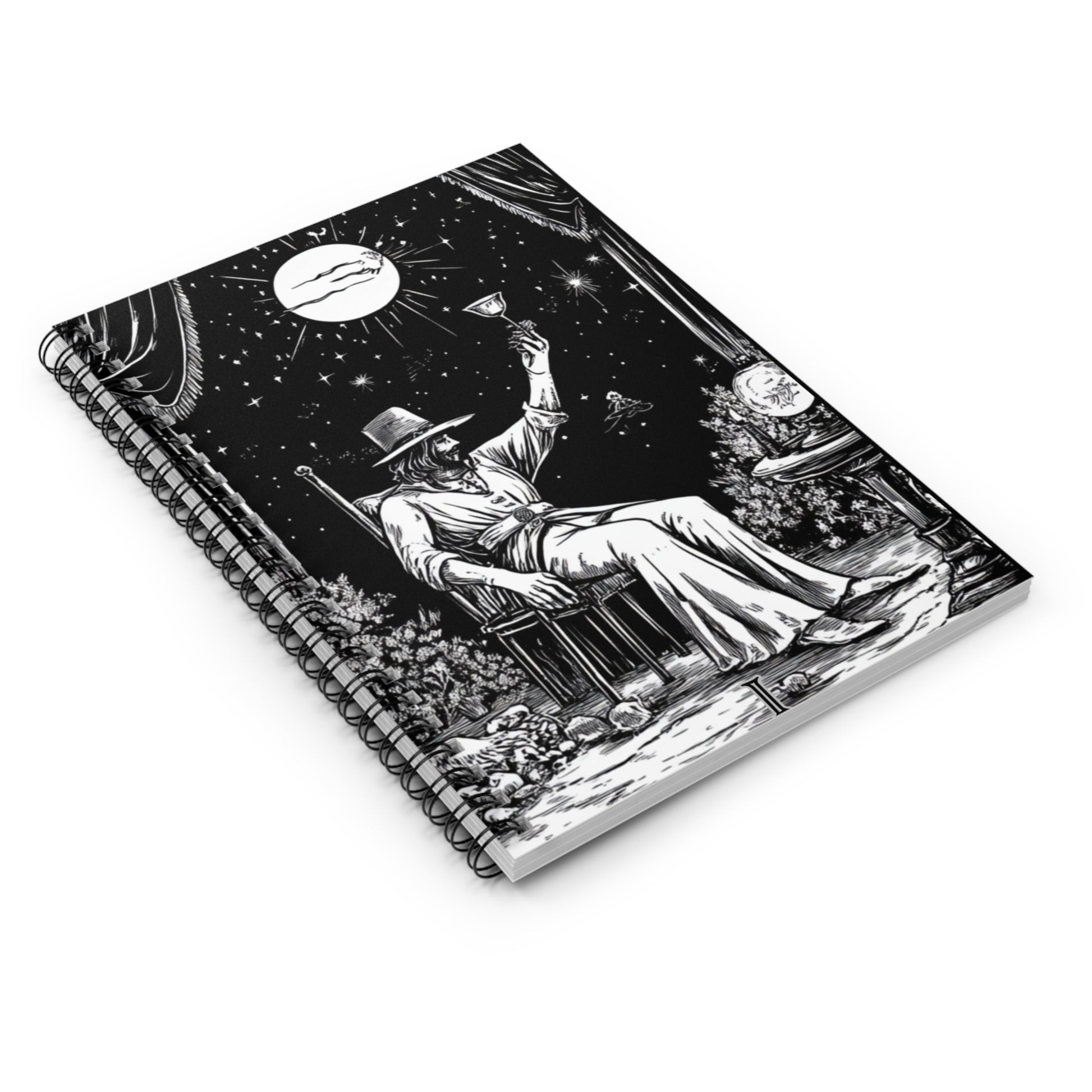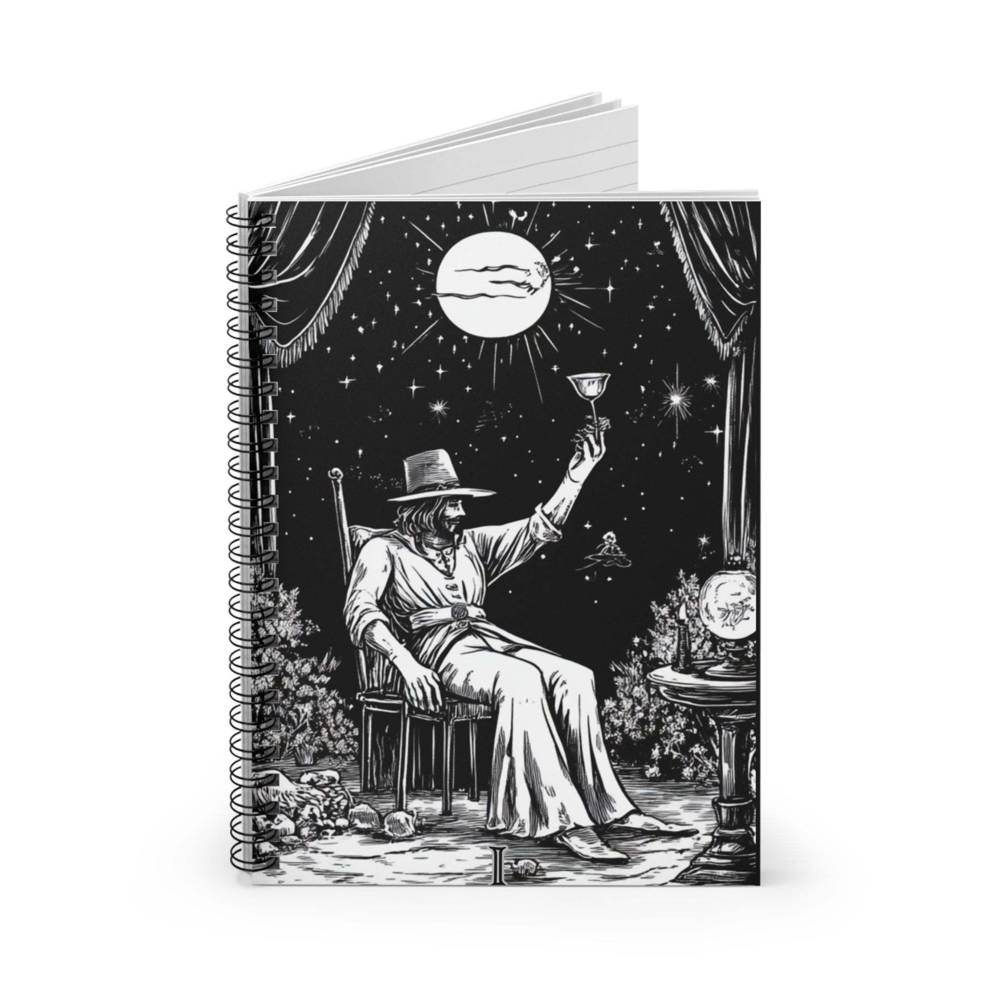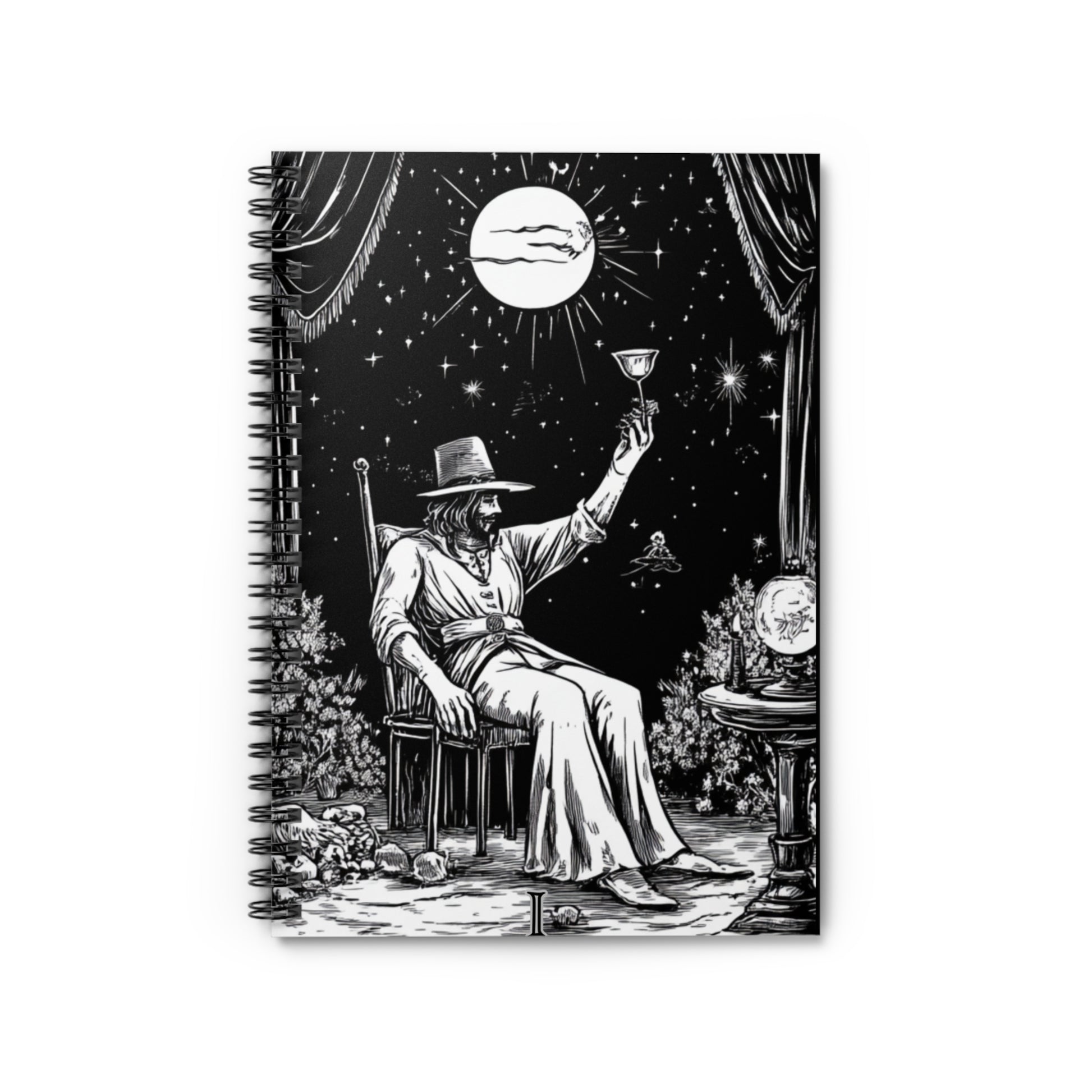 We designed The Magician Themed Notebook with our tarot line art Magician card because I love taking notes on my readings. This notebook is perfect for those who love mystical and magical themes. With 118 ruled line pages, metal spiral binding, and a document pocket for added storage, this notebook is ideal for jotting down spells, magical notes, or everyday thoughts. It can be a great addition to a witch or wizard's collection, and is perfect for Halloween, cosplay events, or fantasy fans.
