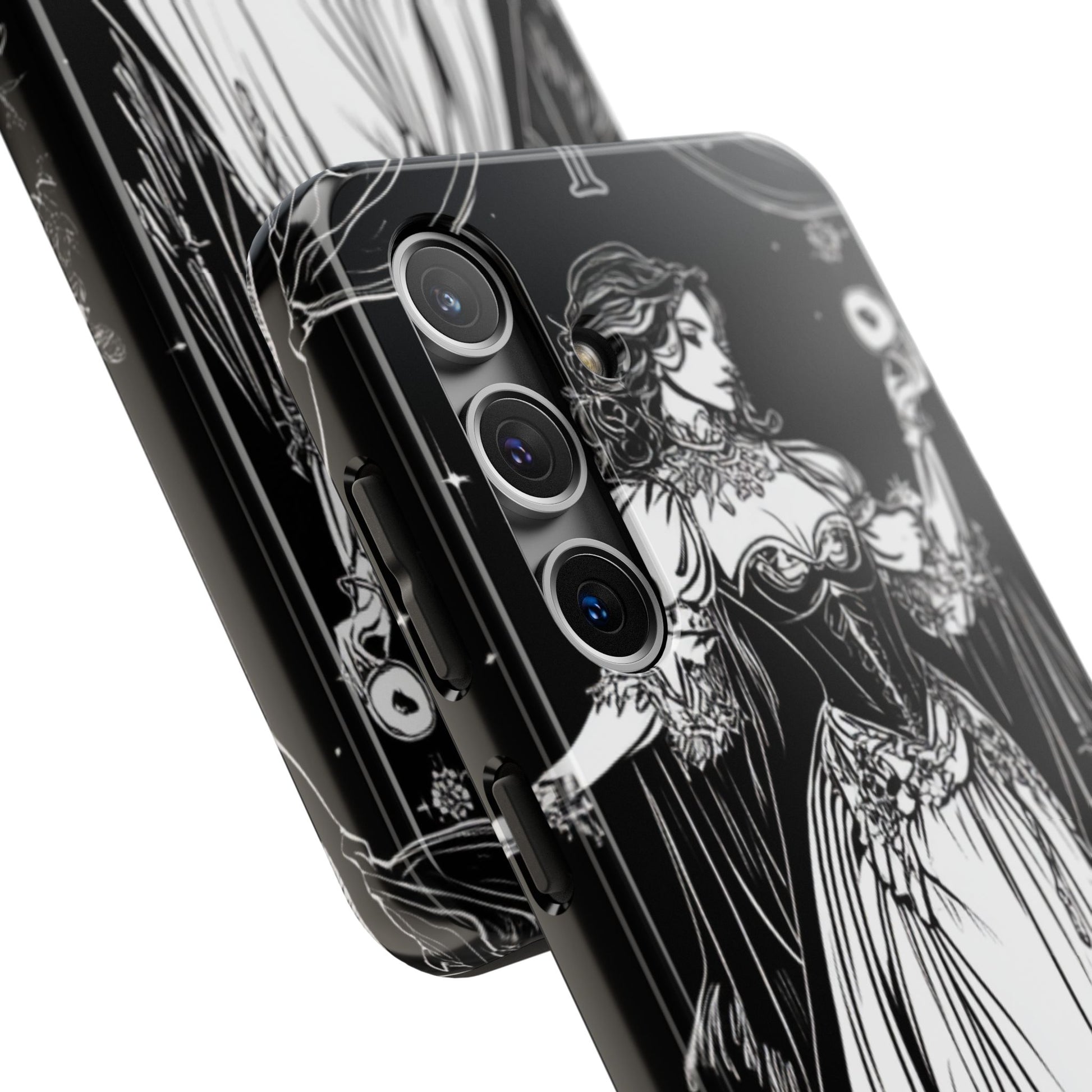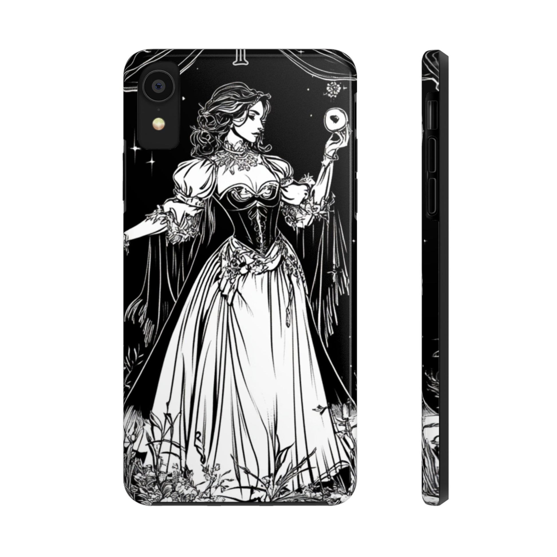 Tarot themed phone case featuring the magician, female version design. This unique and durable phone case is perfect for those who love tarot and want to protect their phone in style. Ideal for astrology enthusiasts and spiritual individuals. Great for gifting on birthdays, holidays, or any special occasion.