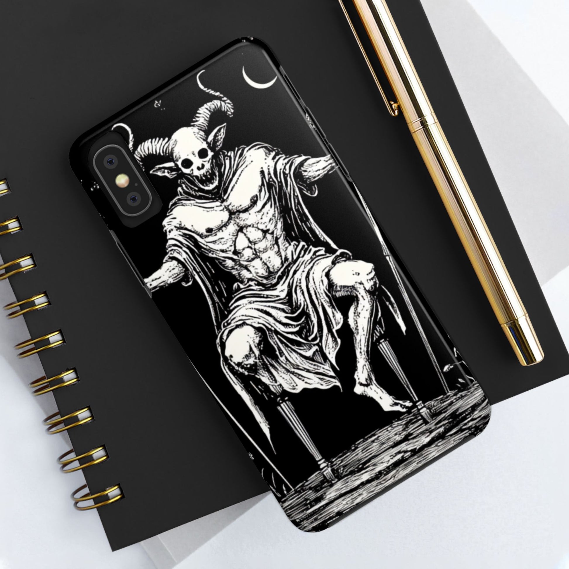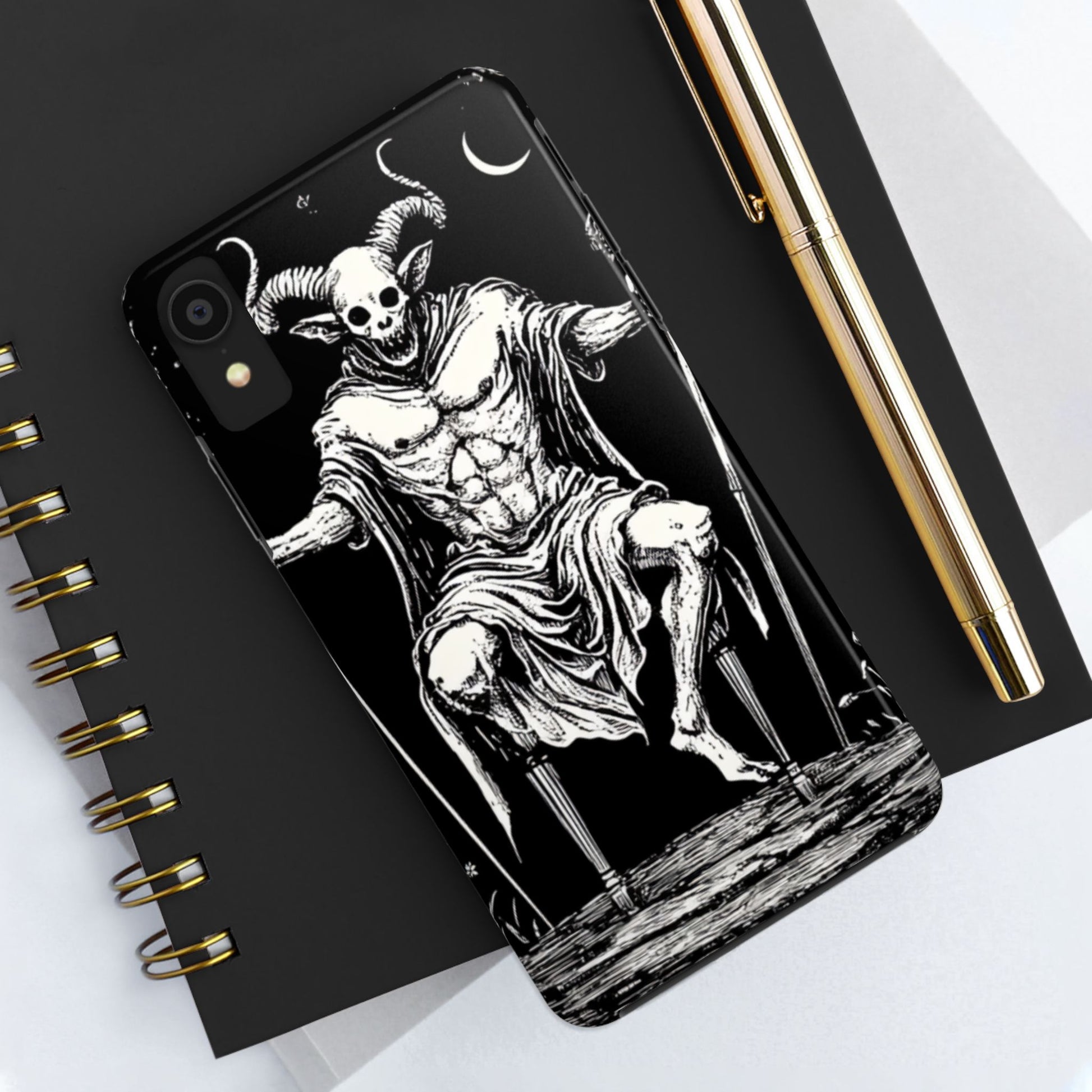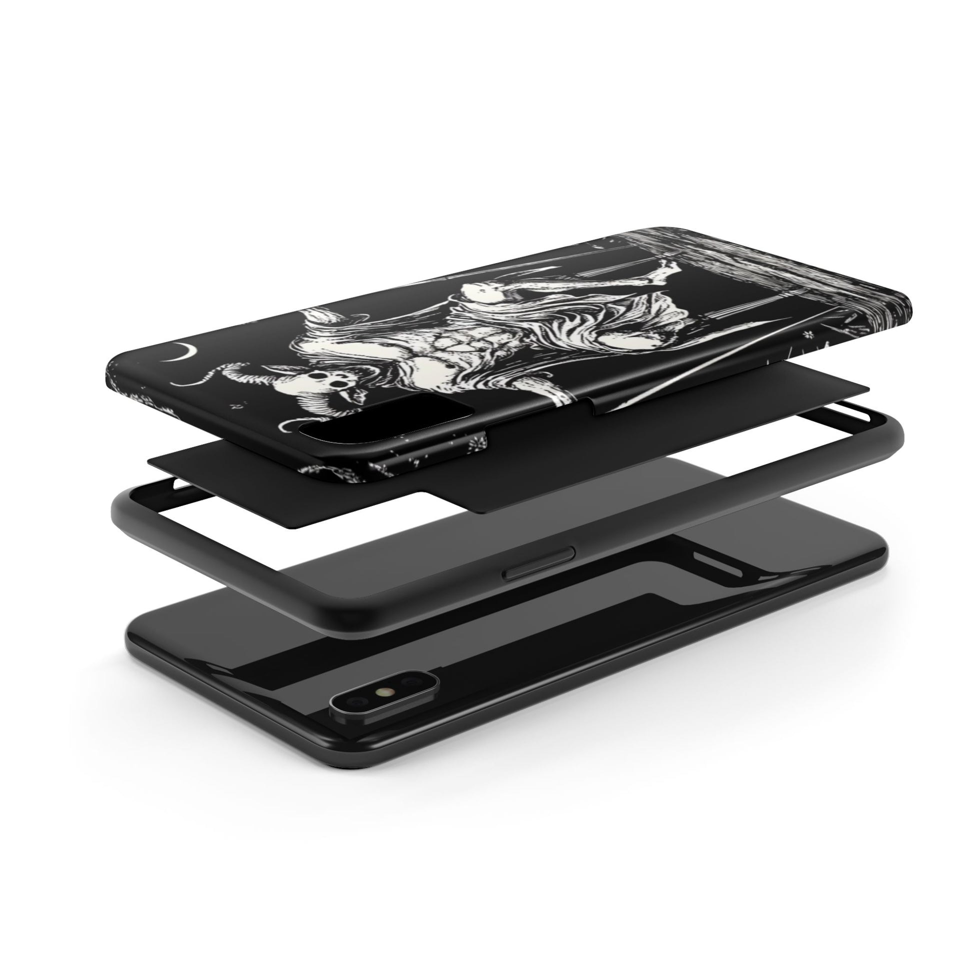 A lord of the underworld tarot themed phone case that exudes mystique and mystery. Perfect for those who love dark and occult aesthetics, this phone case adds a touch of magic to your everyday life. Ideal for tarot enthusiasts and fans of fantasy themes, this phone case is a unique accessory for your device. Great for Halloween, gothic events, and everyday use.